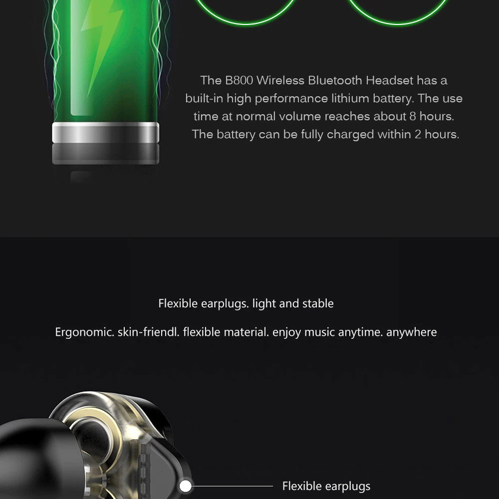 Bluetooth Earphones Wireless Headsets Sport Stereo Bass Bluetooth headphones with mic Estimated delivery 7 to 15 days / after payment is received in the United States. Enjoy High-quality Music Anywhere Ultra Clear Sound Quality with a Bass Stereo Sound Hi-Res audio Stereo Bass Headset Dual Drive with 4 Independence speakers. This is the best sounding Hi-fi stereo ear bugs I have ever had. It sounds like you are there in the room while they are recording. The sound comes from 4 independent speakers in 2 heads that will give you a lower distortion and higher quality sound if you ever have listened to a smooth-flowing then bass stereo sound effect. The earpiece is angled and with a silicone earpiece for a more comfortable fit. You will enjoy this bug set for years to come.