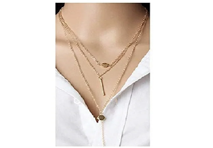 Fashion Women Gold Double bars two Pendant Three-level Chain Necklace Jewelry one left in stock Buy It Now I will not reorder Add a touch of elegance and glamour to any outfit with our Fashion Women Gold Double Bars Chain Necklace Jewelry. Estimated delivery 15 days are List/ after payment is received 100% brand new Full Refund if you don't receive your order At the time of purchase, double-check your shipping information we do not want an item to go someplace else. We mail the information you supply to us in the shipping purchase forms Thank you for understanding! Material: featured high-quality Gold-plated, Highly polished finish. A nice gift. Description: Fashion Women 2 Gold bars and 2 Round pendants with 3 Chains Necklace Jewelry Geometric Style: elegant three-layer chains easily fit any occasion. Maybe tangles, Please be patient to untie it. Very pretty necklace. Necklace Length: Three Gold chain necklaces first chain 15" with an extension link about 18" total with a Round Gold Pendant 5/16" in diameter attached to it, The central chain is about 21" long total with a 1"Round Gold Bar 3/16" in diameter at the bottom of the chain, and the third chain is about 23" total with a length with a second-round pendant with a 2 3/4" with short-chain about 2 1/2" a second-Round Bar at the bottom of the necklace Condition: 100% Brand New and High Quality Material: Alloy Gold Plate Theme: 2 Round Gold bars / 2 Silver pendants and 3 Chains Necklace Jewelry Length: Round Gold bar 1: 1 1/2'' Round Gold bar 2: 1'' Necklace Length: 40-45 CM Length (inches): one chain about 18" Country/Region of Manufacture: China Package Included: 1 x Necklace Converse: 1 inch = 2.54 cm or 1 cm = 0.393 inch