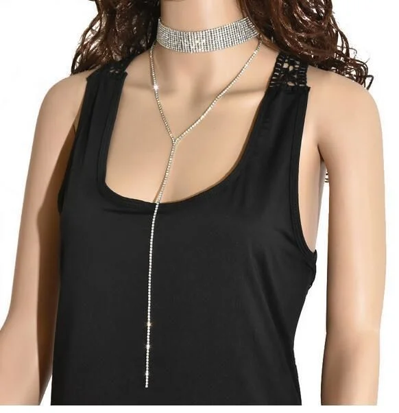 Fashion Sexy Crystal choker necklace Statement Long Tassel Multi-layer Rhinestone silver chain Necklace Party jewelry for women Gift